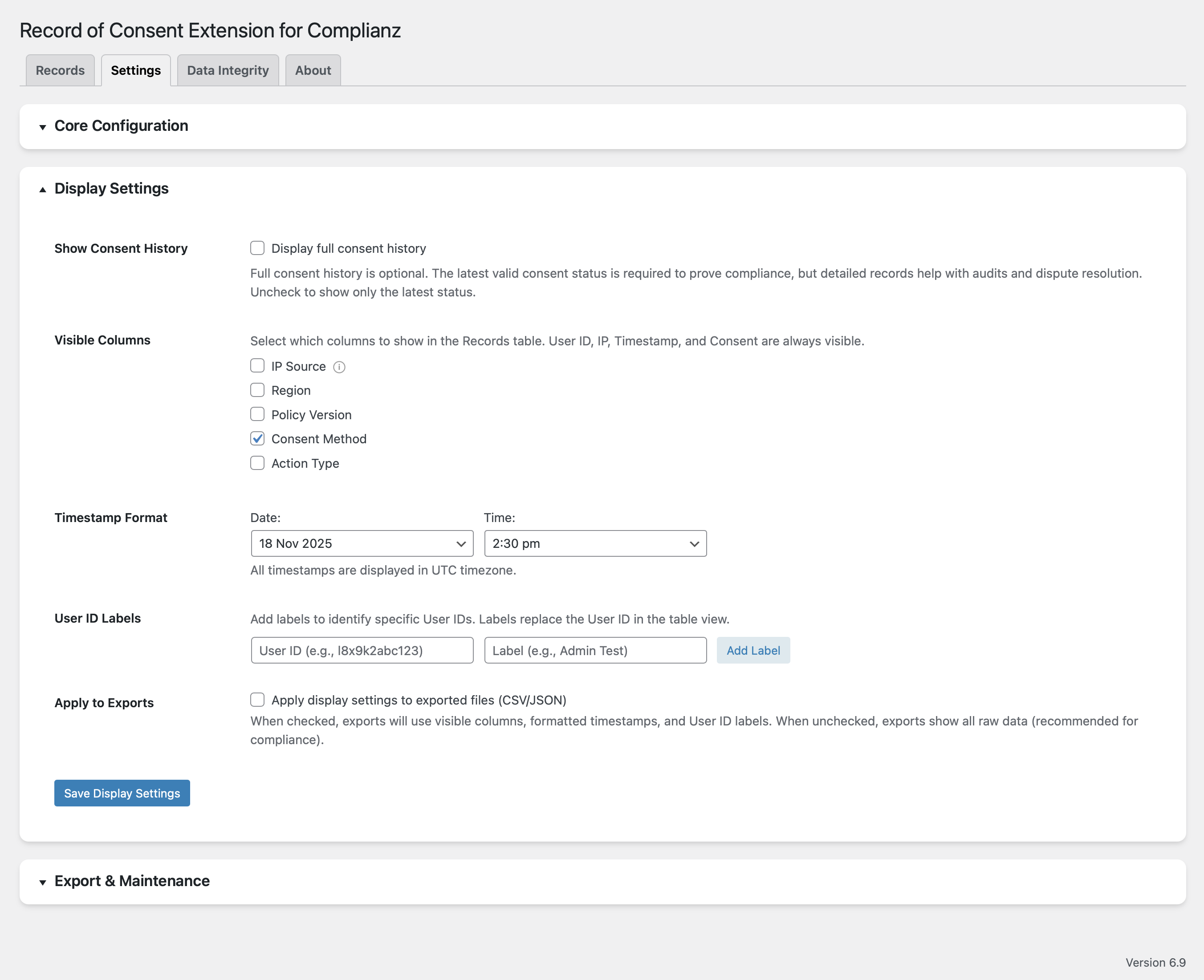 - Allows you to export all consent data, so you can keep a backup or review it offline.